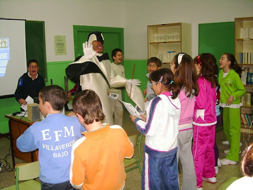Pie de Foto: Un momento de la presencia del Pingüino Bartolino con alumnos de 5º de Primaria del Colegio ‘Virgen del Carmen’.